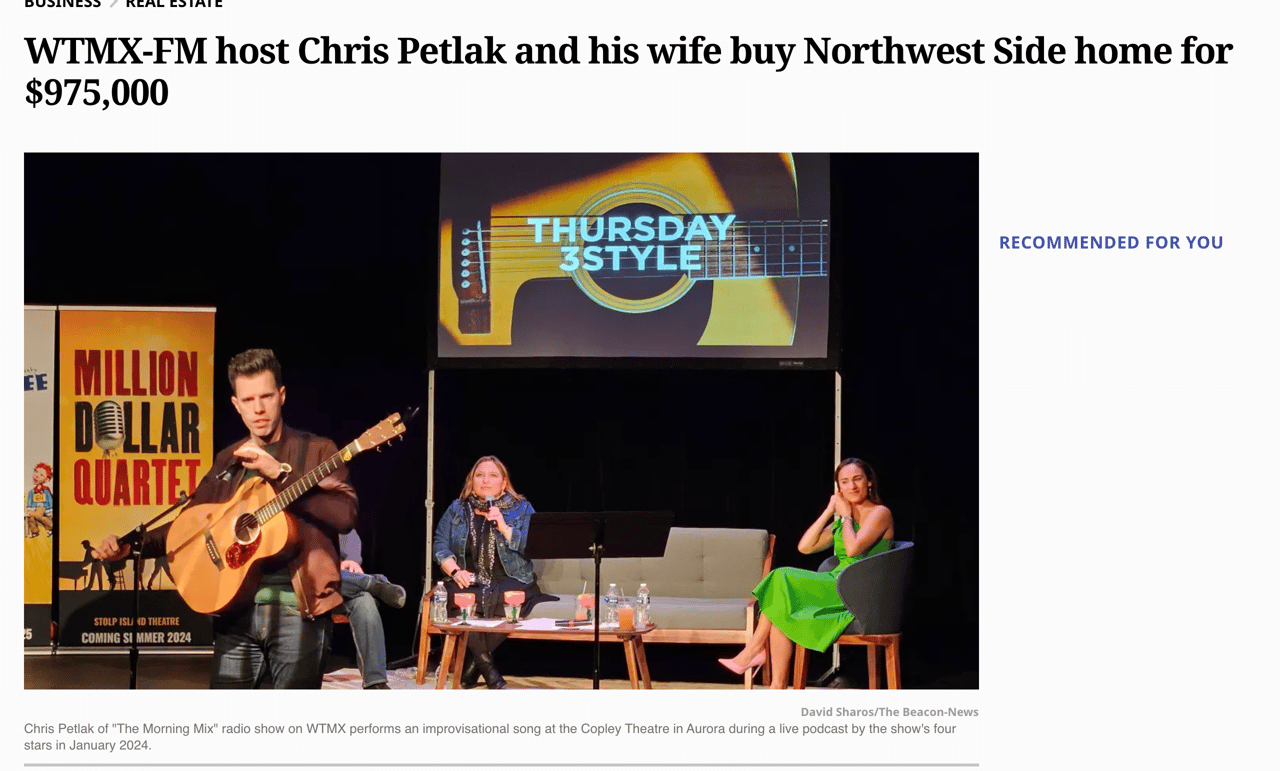 WTMX-FM Host Chris Petlak and his wife buy Northwest Side home